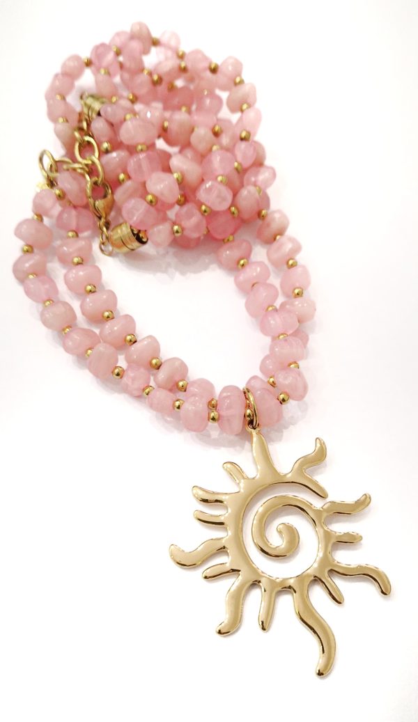 Collana doppia catena rosa con ciondolo sole
