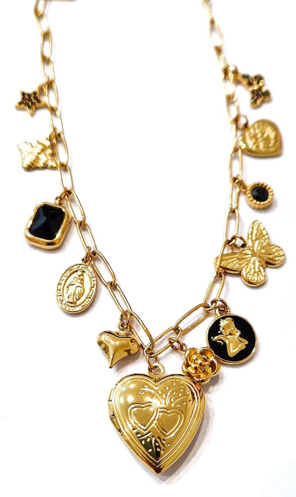 Collana con ciondoli smaltati, lisci, con zirconi neri